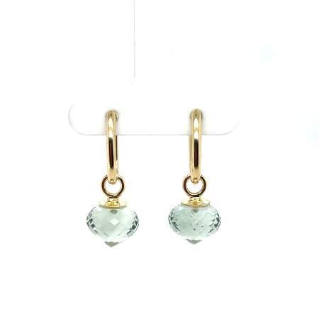 14kt geelgouden oorbedels met prasioliet. Let op! Exclusief klapoorringen.