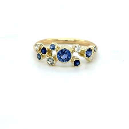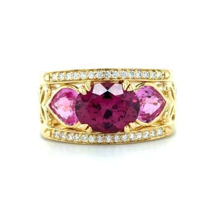 Camp & Co 18kt Geelgouden Ring met Rhodoliet, Saffier en Diamant