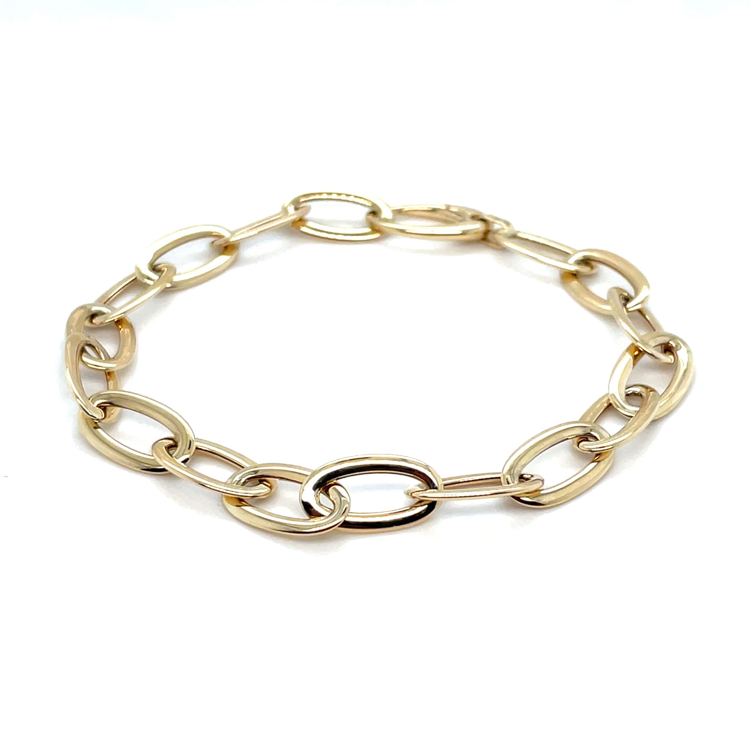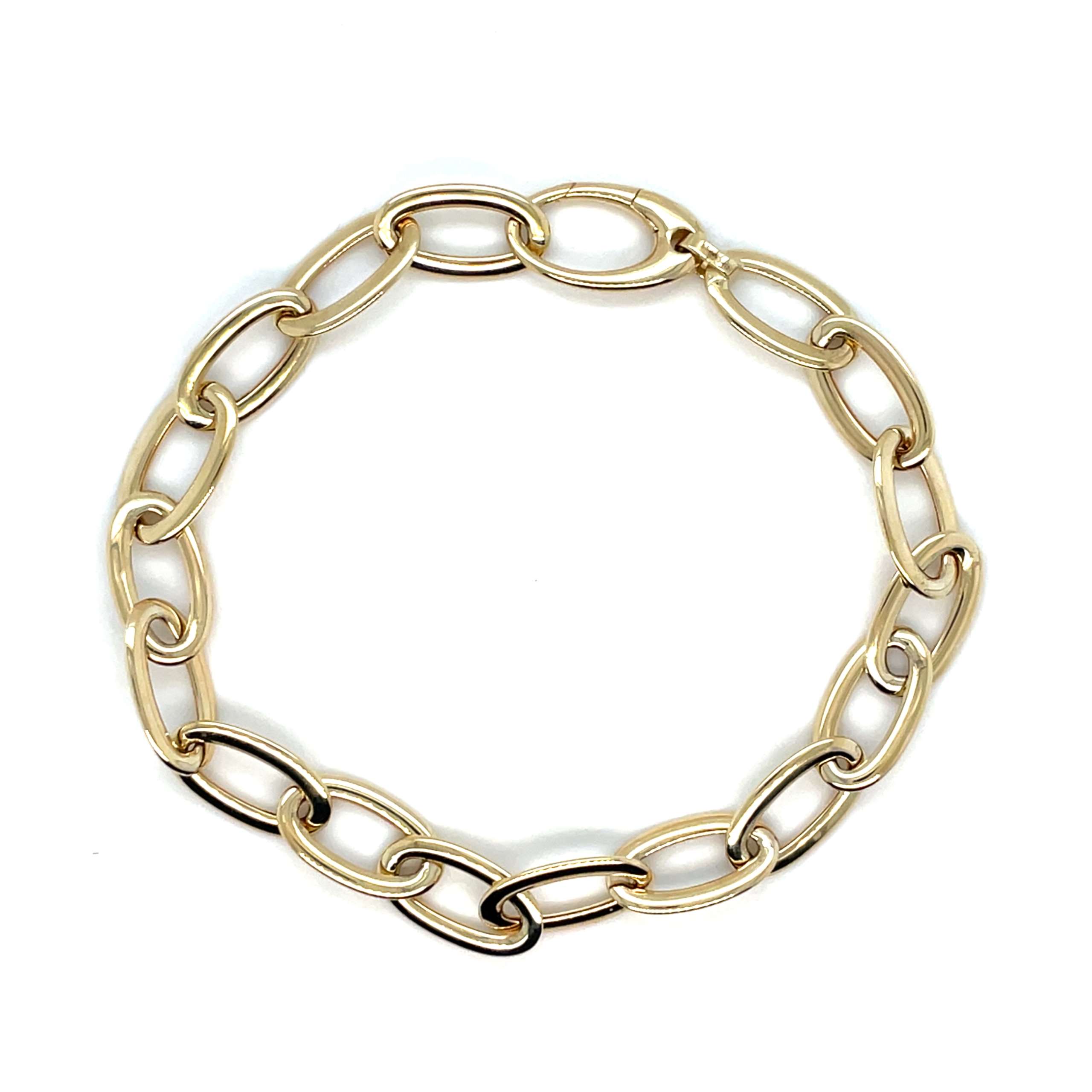 Een 14 karaat geelgouden armband met grote ovalen schakels.