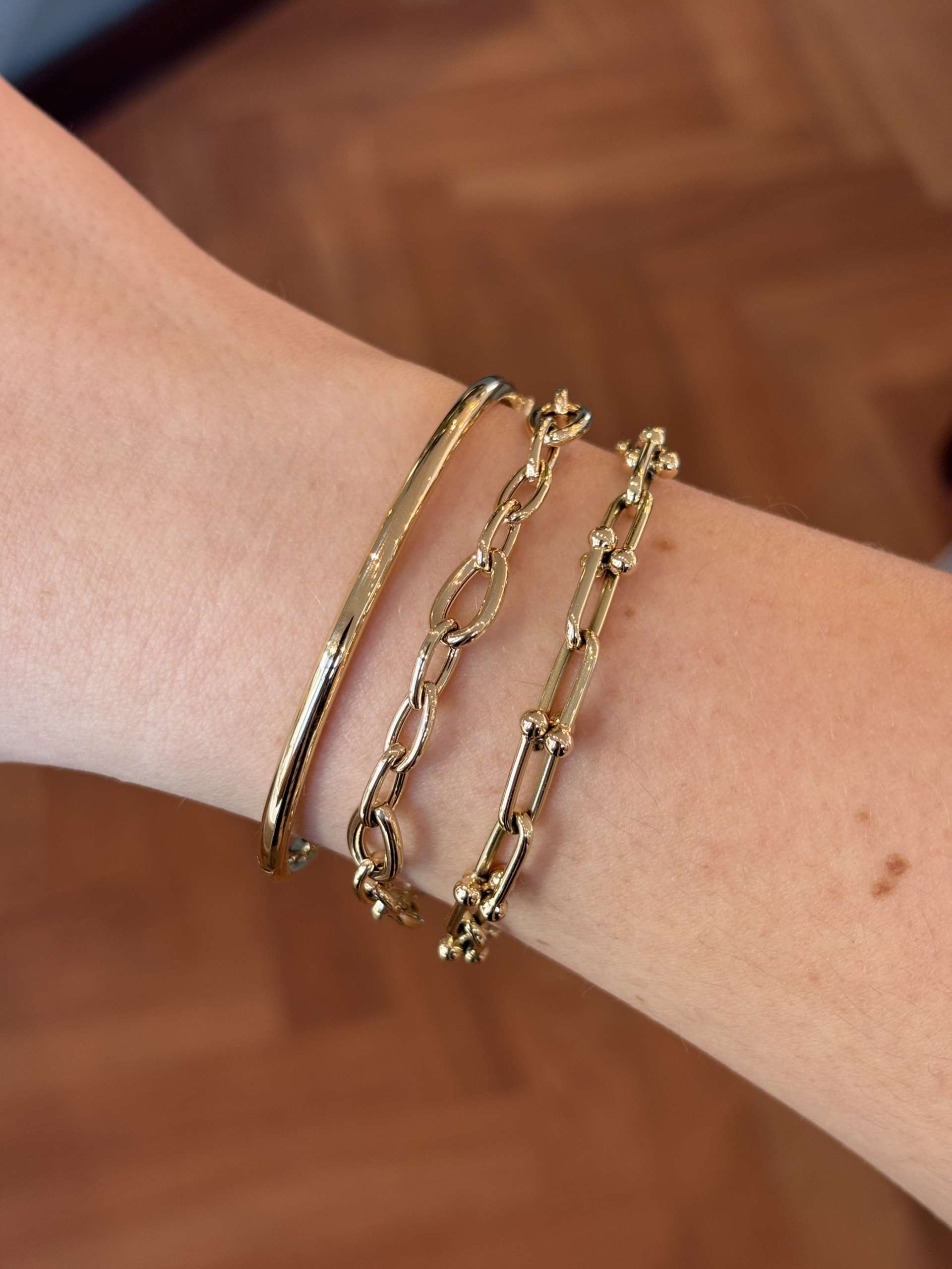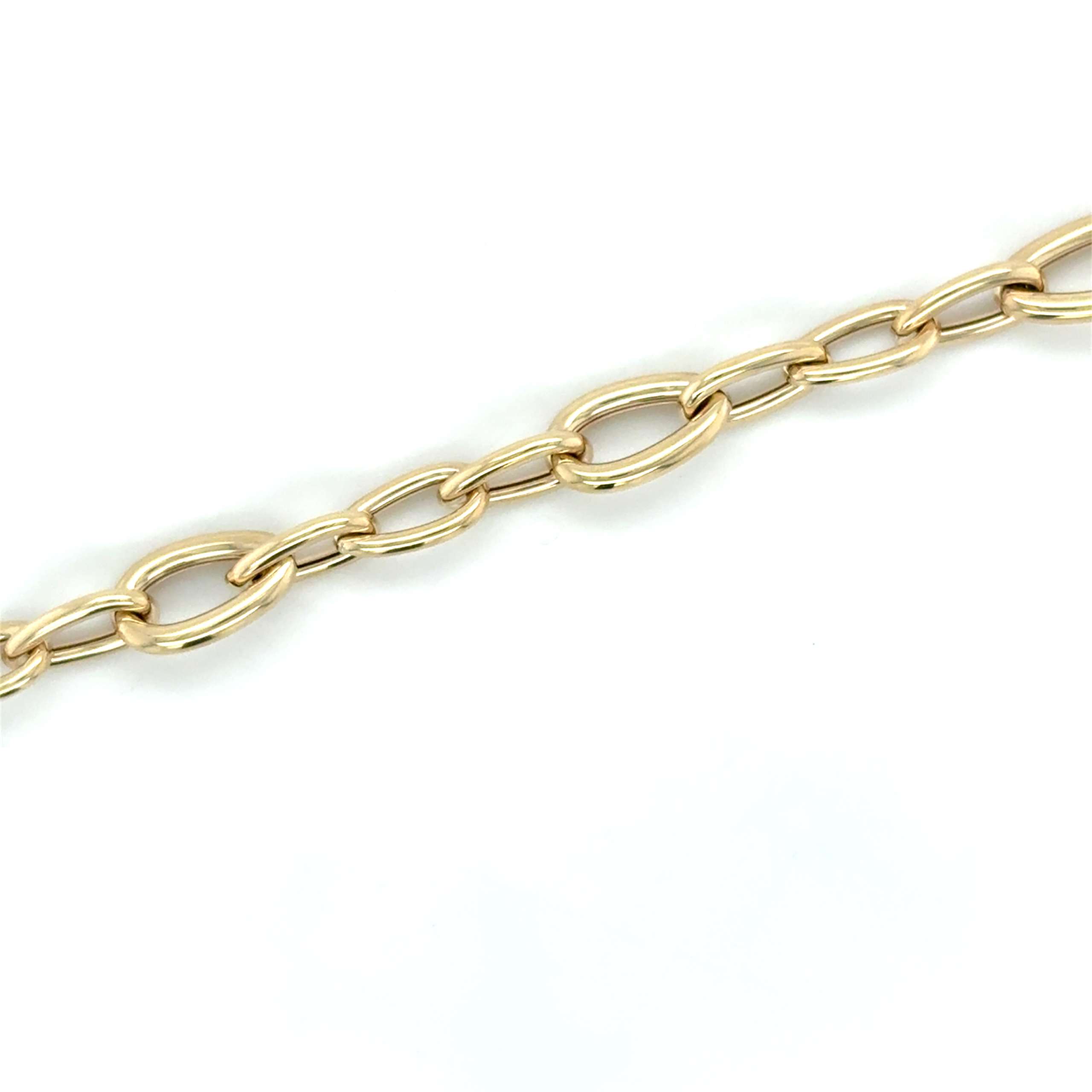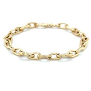 Een 14 karaat geelgouden schakelarmband met speelse schakels