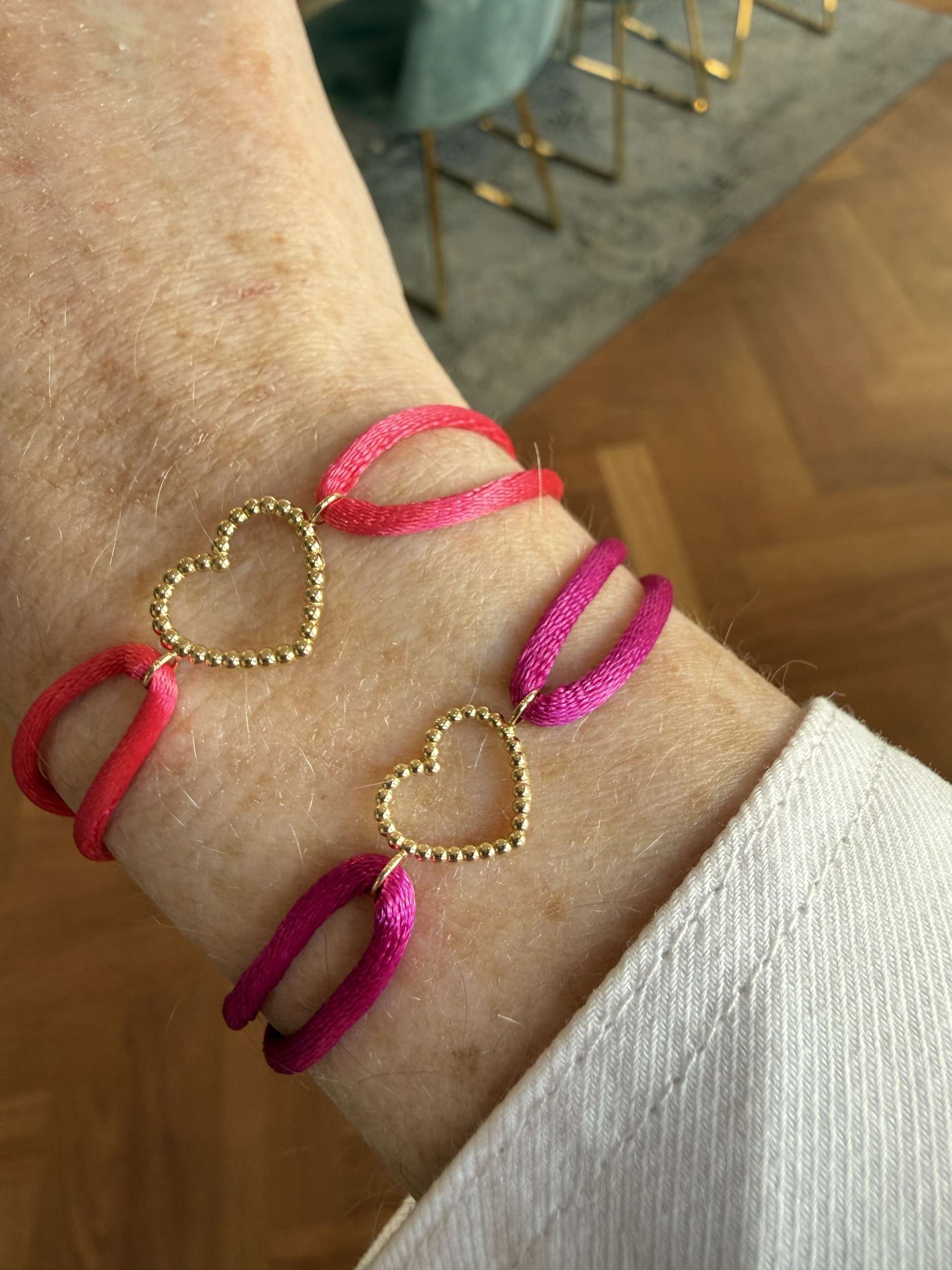 14kt geelgouden hart op satijn. aantal