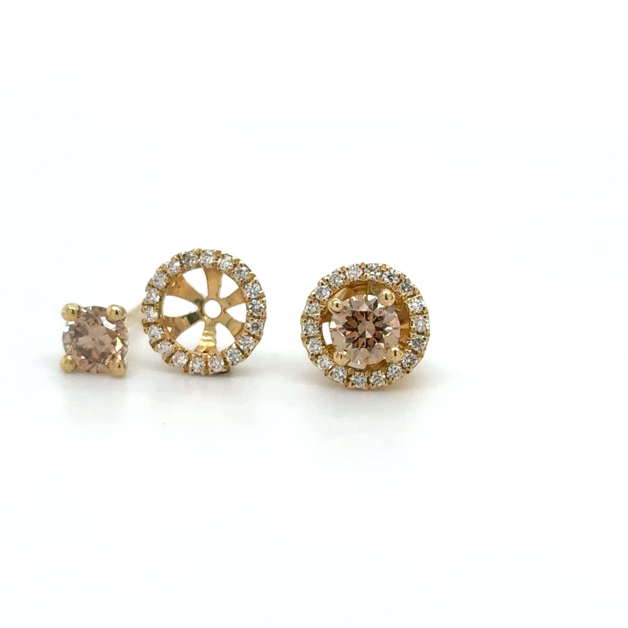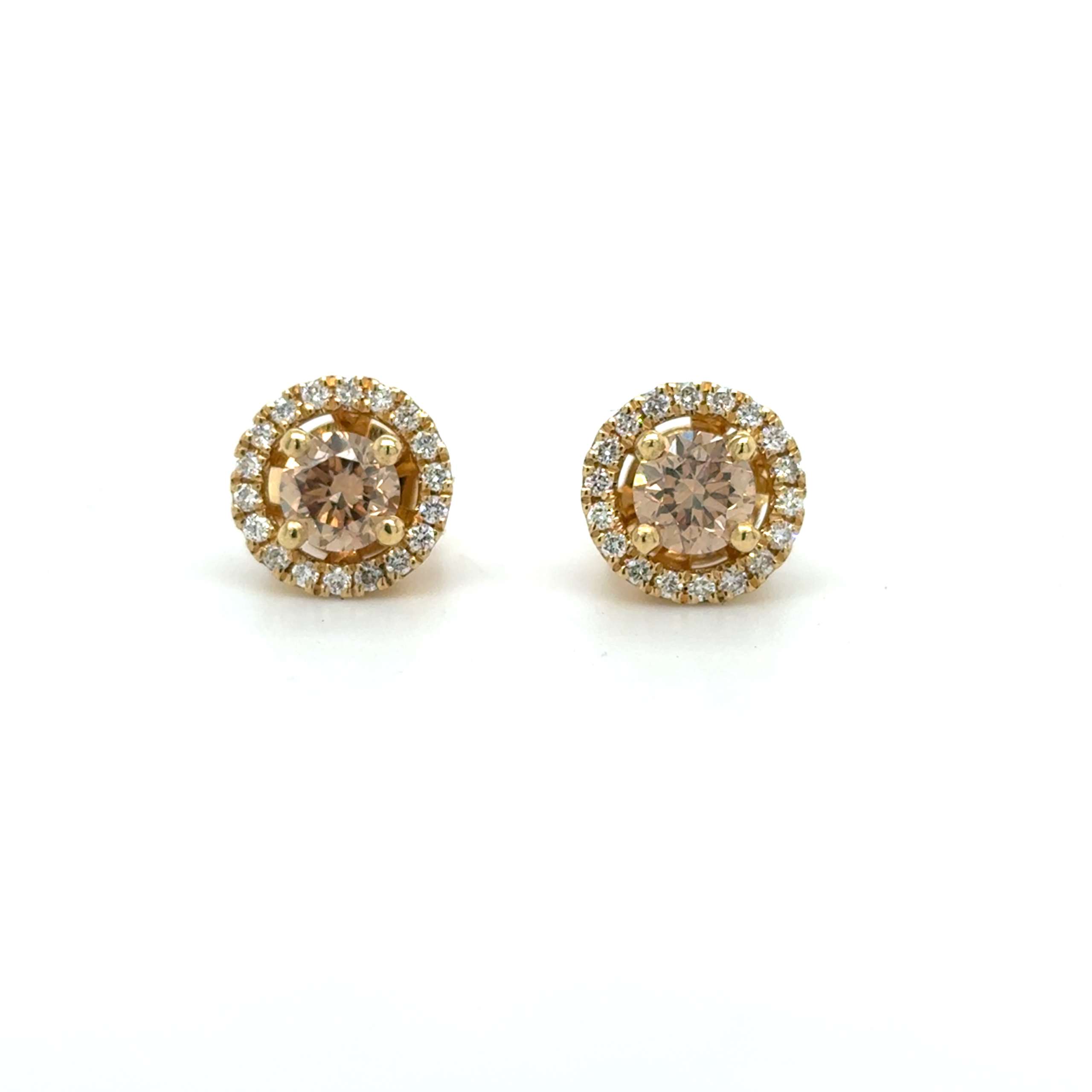 18kt geelgouden oorknoppen met losse halo's.