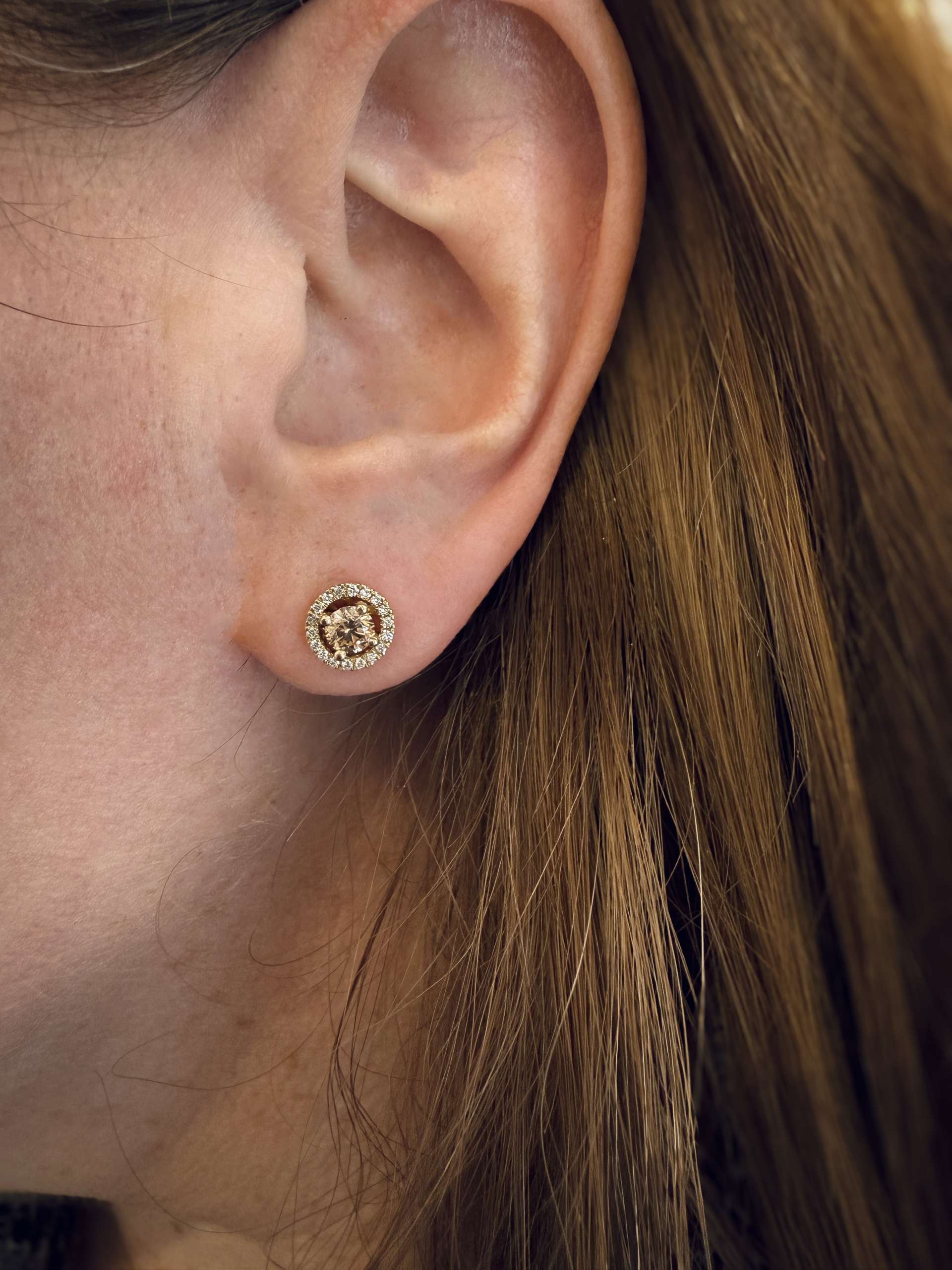 18kt geelgouden oorknoppen met losse halo's. aantal