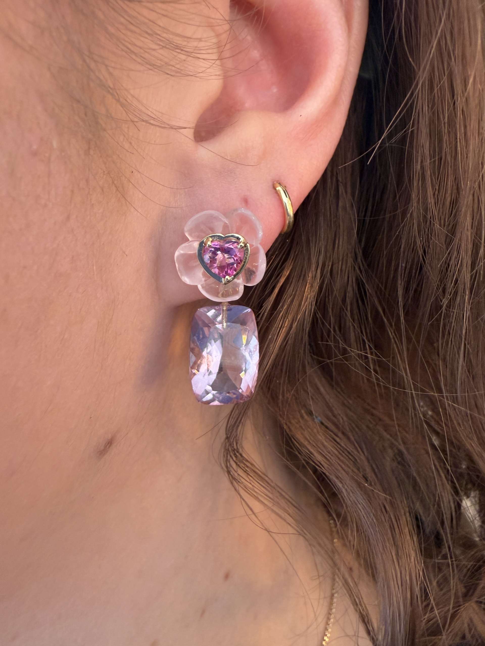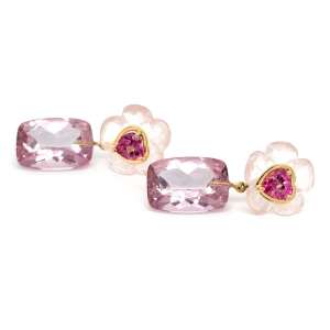 Geelgouden oorhangers met saffier en rozenkwarts. aantal
